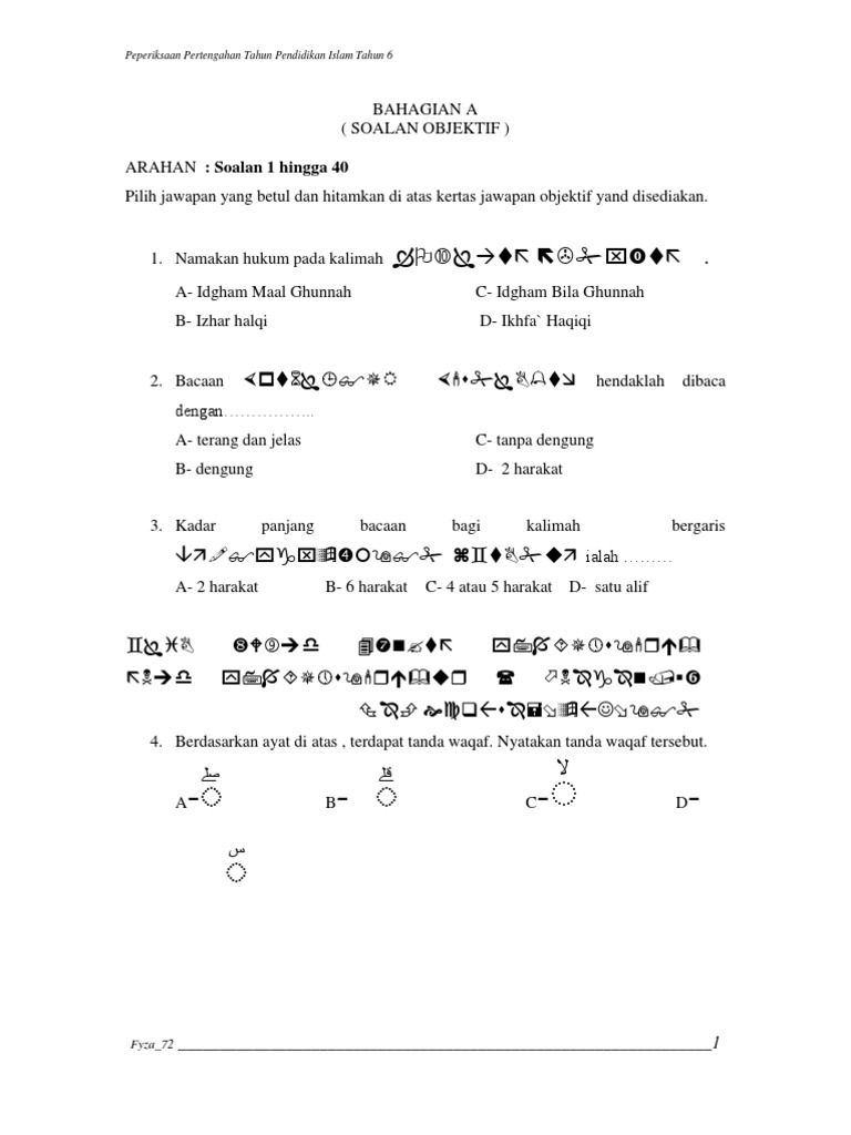 Soalan Peperiksaan Awal Tahun Pendidikan Islam Tahun 1 Ujian Bulan Mac 2018 Cikgu Ayu